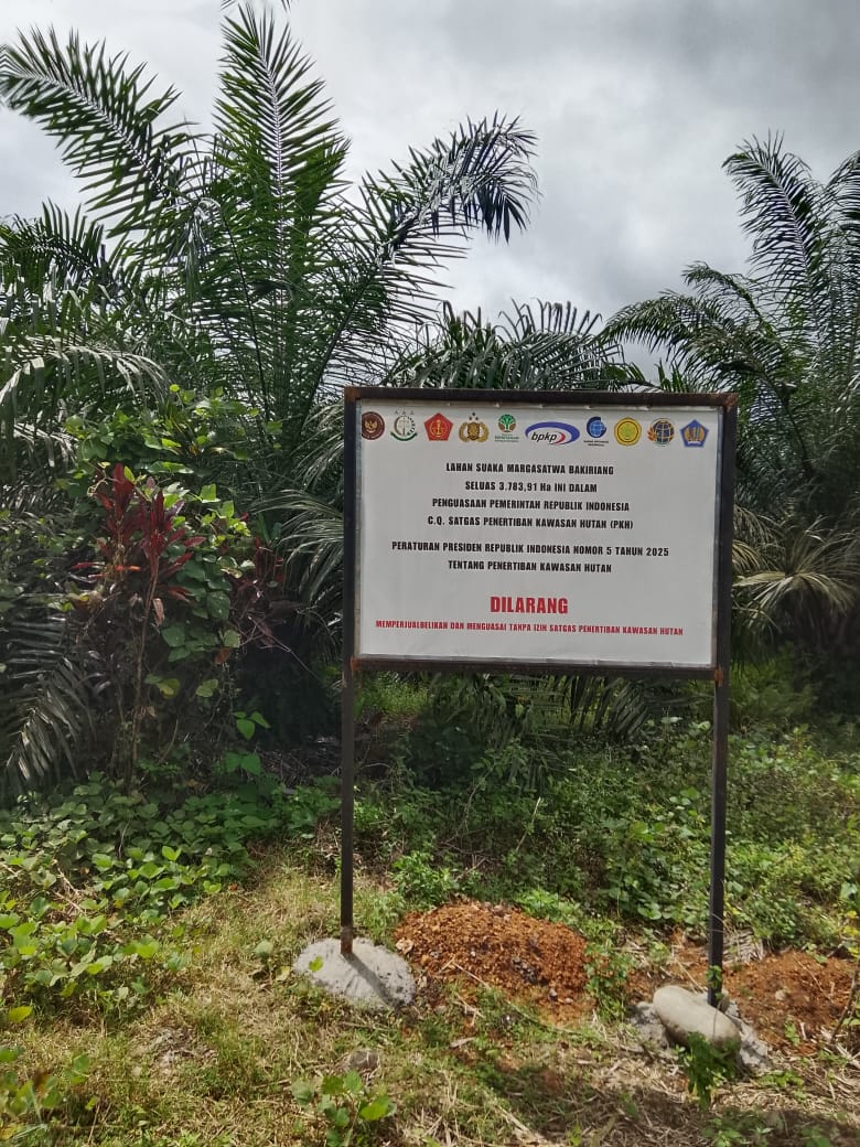 Dari hasil penertiban tersebut, terlihat Satgas PKH sudah memasang plang sebagai penanda bahwa kawasan itu milik Negara.