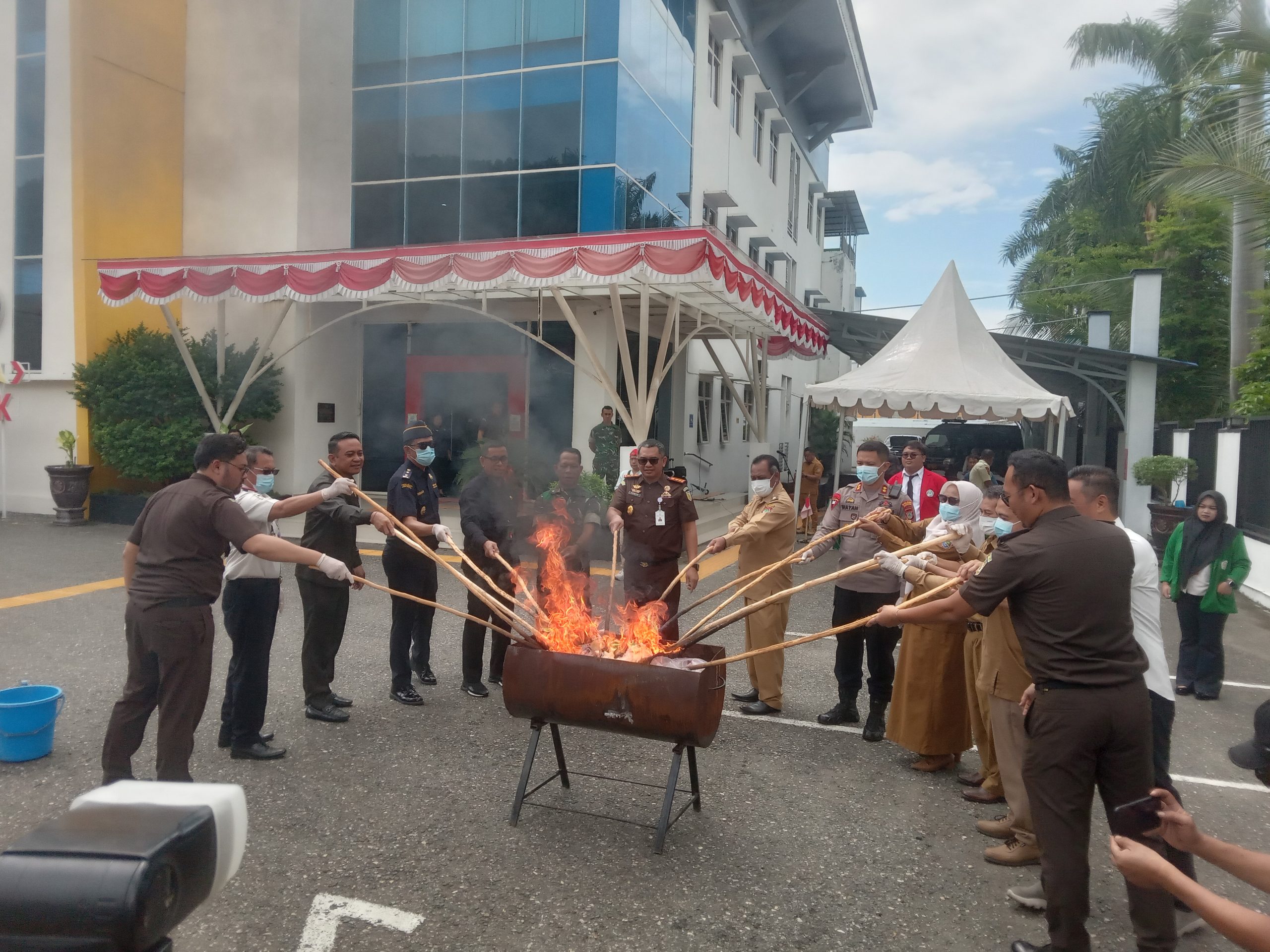 BANGGAI – Kejaksaan Negeri (Kejari) Banggai Sulawesi Tengah melakukan pemusnahan barang bukti dari sejumlah perkara tindak pidana yang telah berkekuatan hukum tetap (inkrah).