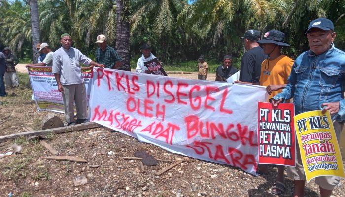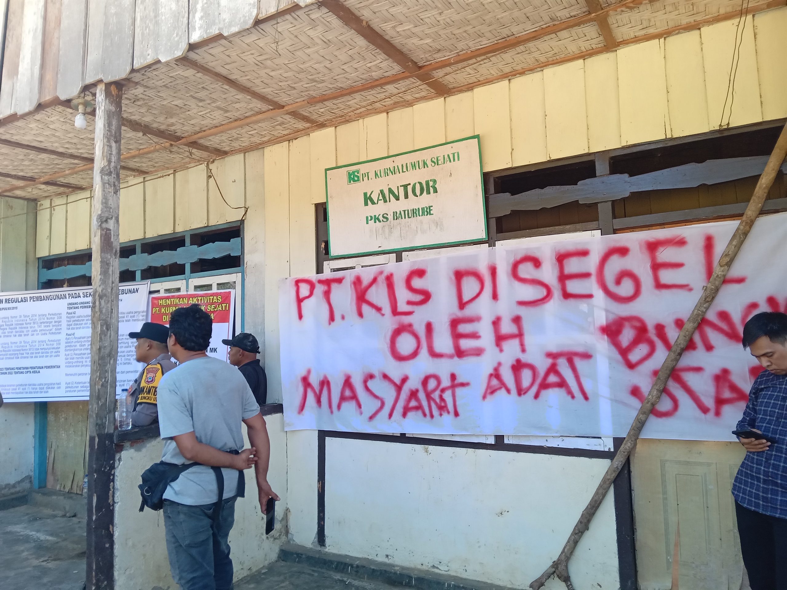 Tak tanggung-tanggung kali ini aksi massa menduduki camp PT KLS dengan melakukan penyegelan. Hal itu sebagai bentuk protes mereka terhadap perusahaan, karna dinilai telah melakukan perampasan hak atas tanah ulayat.