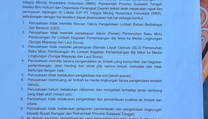 Sehingga sehubungan dengan hal tersebut, Gubernur Sulawesi Tengah, Anwar Hafid menugaskan PT Integra Mining Nusantara untuk :