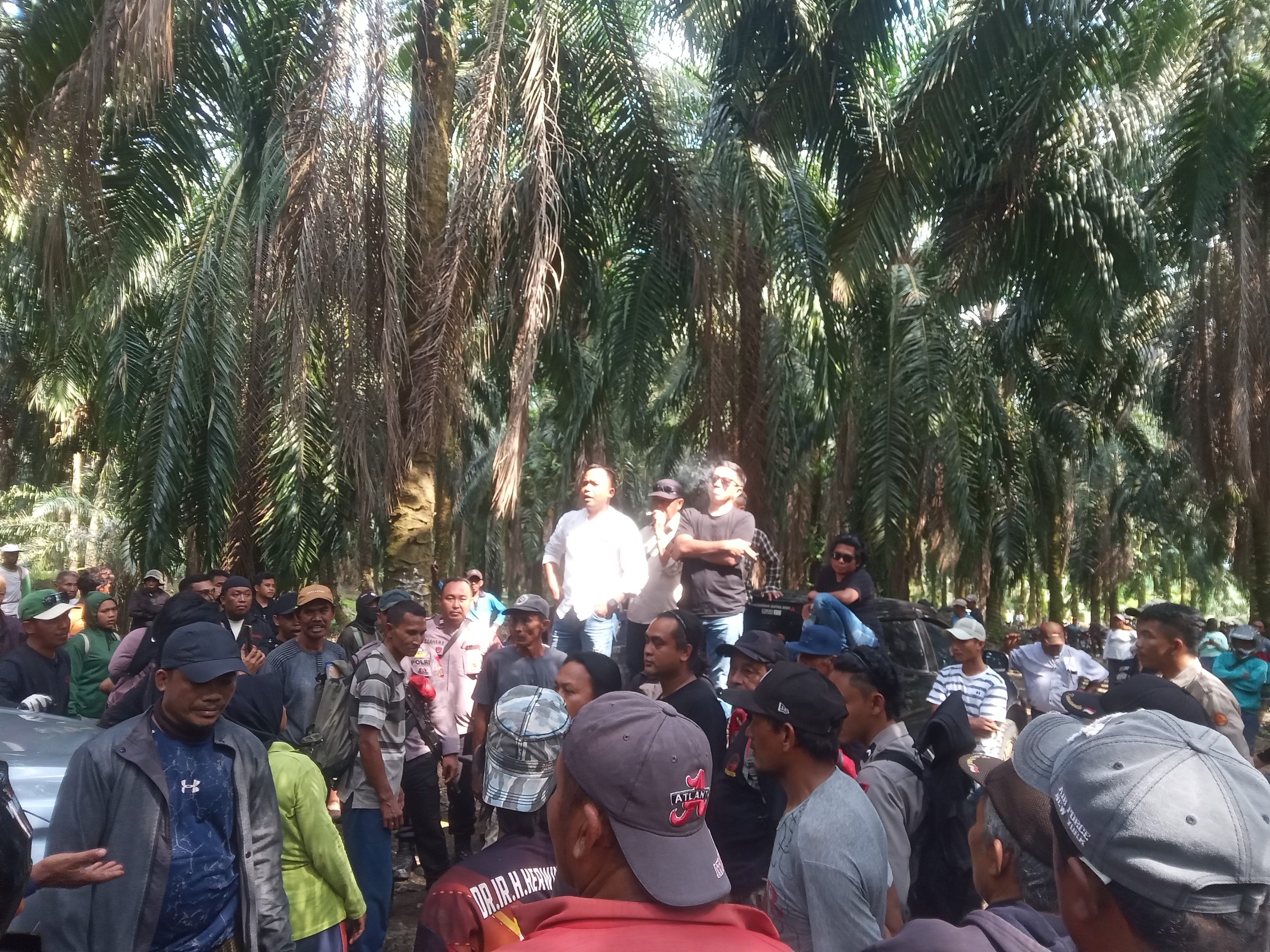 Warga yang melakukan pendudukan diatas lahannya dengan memanen buah sawit, pada saat ingin keluar dari areal perusahaan diblokade oleh sejumlah orang PT KLS. Ketegangan pun memuncak setelah kedua kubu tersebut adu mulut.